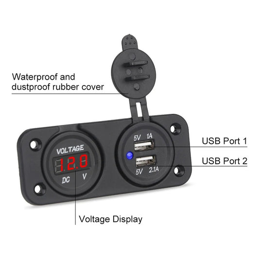 Panel Doble Adaptador 2usb + Voltímetro 12-24v Auto Camión