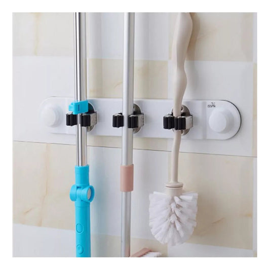 Organizador De Pared 3 Escoba Mopa Trapero Ventosa Fuerte