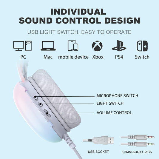 Audifono Gamer X30 Orejas De Gato Luz Rgb Microfono Desmonta