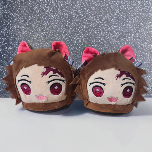 Pantuflas Esponjosa Abierta Tanjiro Talla 36-41 Anime Kawaii Chocolate Único
