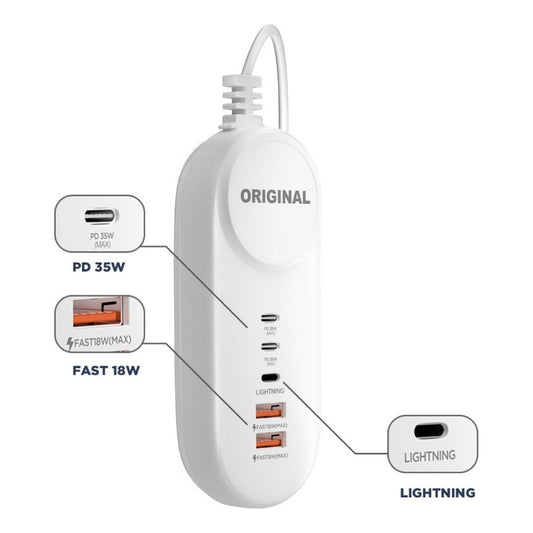 Cargador 35w Usb-c Hub Usb 5 Puertos Carga Rápida Alargador