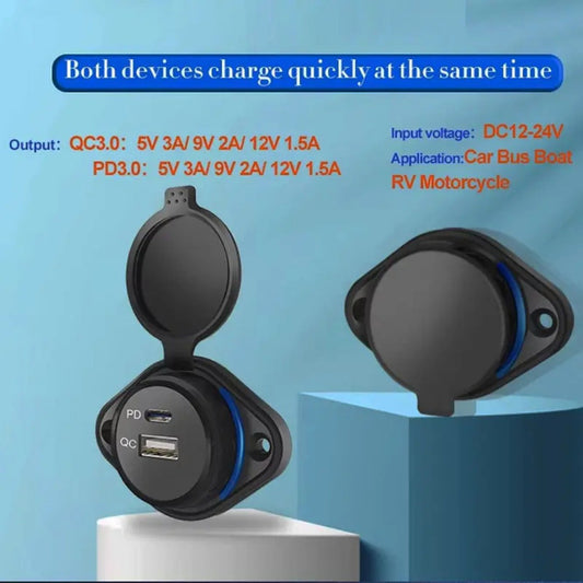 Cargador Carga Rápida 2 Usb 1 Type C 12-24v Sobrepuesto
