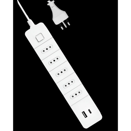 Alargador Con Switch 5 Posiciones + Usb + Tipo C 1.5mt Certi Color Blanco