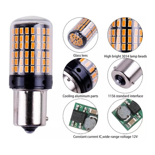 X2 Ampolleta 144 Led Intermitente Py21 Pata En V 12v Ámbar