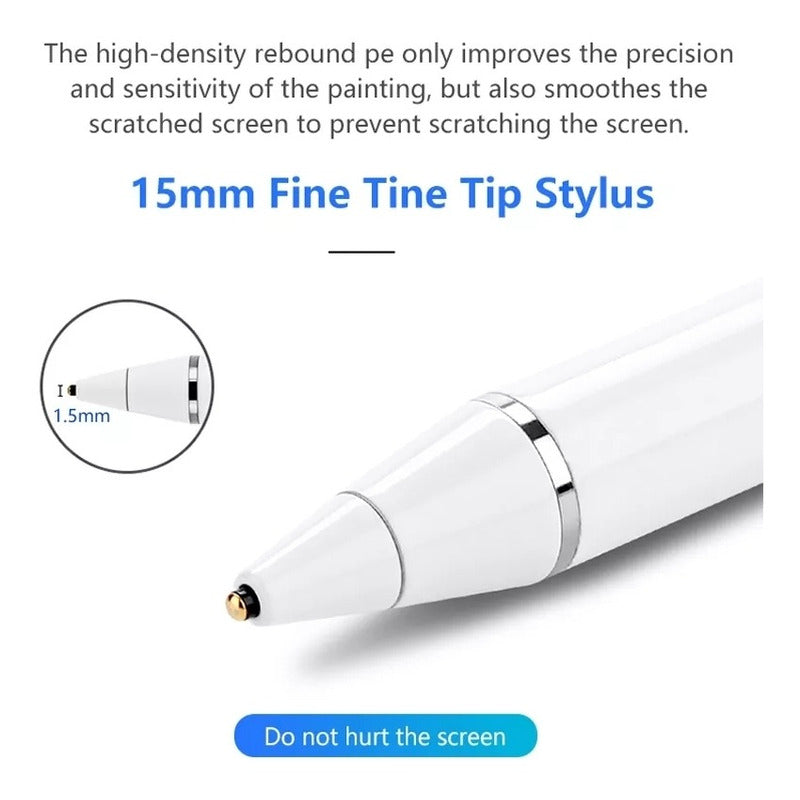 _____________________SOMOS R&C CHILE____________________ Somos la tienda Online más completa del mercado, donde puedes encontrar todo aquello que estás buscando y una gran variedad de productos novedosos, con una ubicación privilegiada en Santiago Centro. Aprovecha un solo envió e incluye más productos en tu CARRITO DE COMPRAS. Todos nuestros productos son probados antes de ser enviados, para brindarte la mejor experiencia de compra. Si tienes un problema no dudes en escribirnos estaremos atentos para ayudarte y brindarte asesoría. Haz tu compra segura con nosotros, realizamos envíos por mercado envíos (y Transportes a convenir), además si te encuentras en Santiago contamos con envío rápido flex. Te brindamos la MEJOR ATENCIÓN Pre y Post Compra, para solucionar todas tus dudas. _____________________________________________ Lápiz capacitivo activo, con punta fina de cobre de 0.057 in, total de 5.709 in de largo, proporcionando dibujo o escritura precisa. Rendimiento de trabajo de interacción amigable. Duradero y resistente. El mejor lápiz capacitivo para artistas, periodistas, profesores y estudiantes, etc. Batería recargable, proporcionando un total de 8 horas o más horas de trabajo continuo después de una carga completa de 1 hora. Más de 60 días en espera. (Nota: no se recomienda utilizar un cargador rápido para el lápiz capacitivo puede dañarse) Compatibilidad universal, este lápiz óptico puede funcionar con iOS, Android, pantallas táctiles de sistema Windows, compatible con la mayoría de aplicaciones de dibujo. Ampliamente utilizado para Apple iPads, tabletas de micro sistema, tabletas Samsung y otros teléfonos inteligentes con pantalla táctil capacitiva. Con indicador LED, que muestra azul durante el trabajo y rojo cuando se carga. Un botón inicia el bolígrafo, no requiere conexión USB o Bluetooth. Función de apagado automático de 30 minutos.