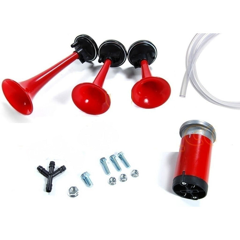Bocina Eléctrica Tres Trompetas Aire + Compresor Auto 12v