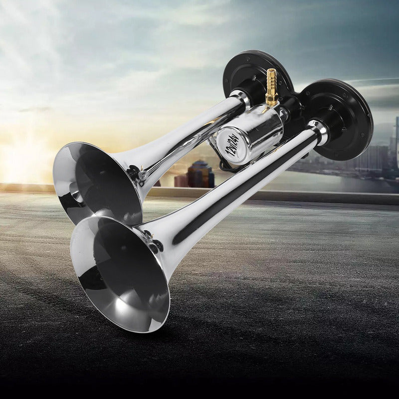 Bocina De Aire Electrica Doble Trompeta 12v-24v Auto Camión