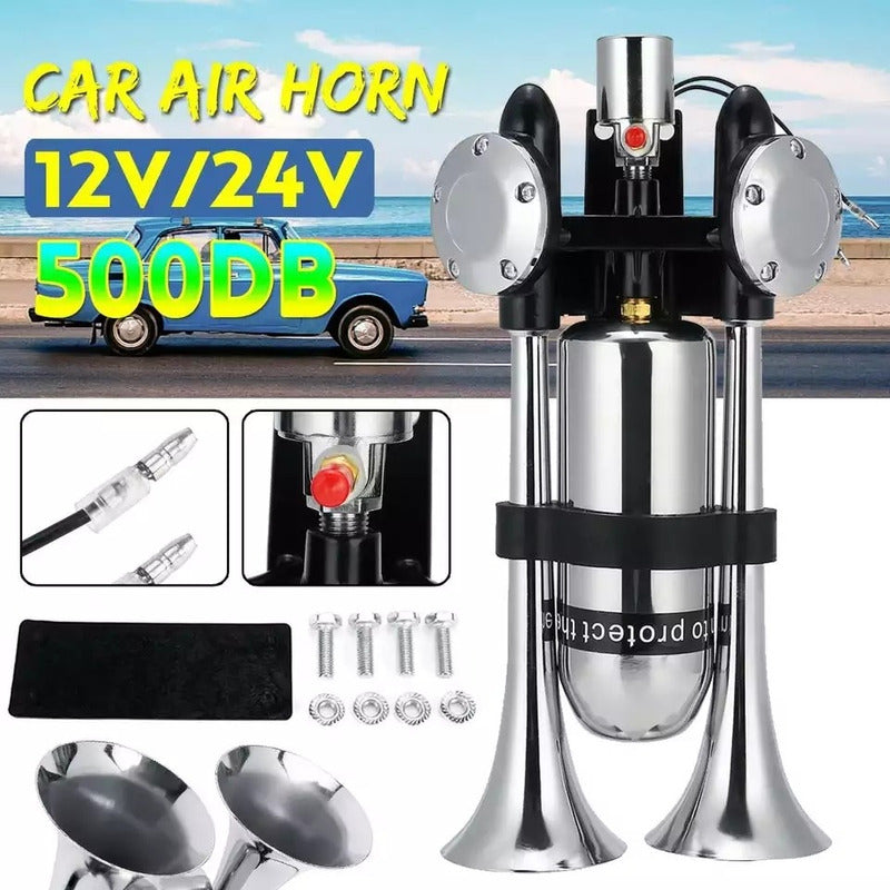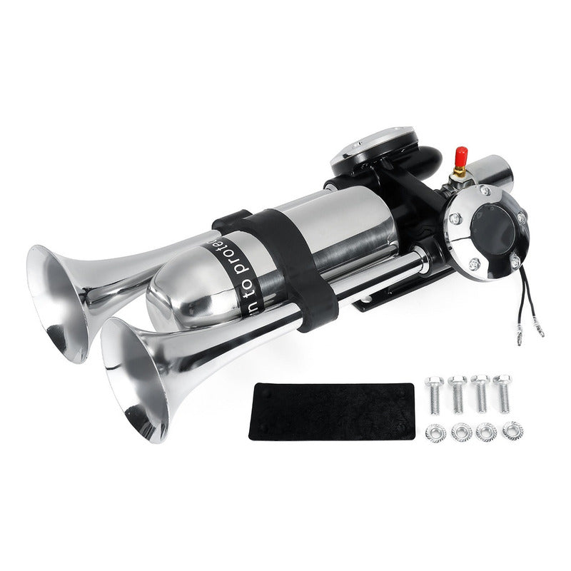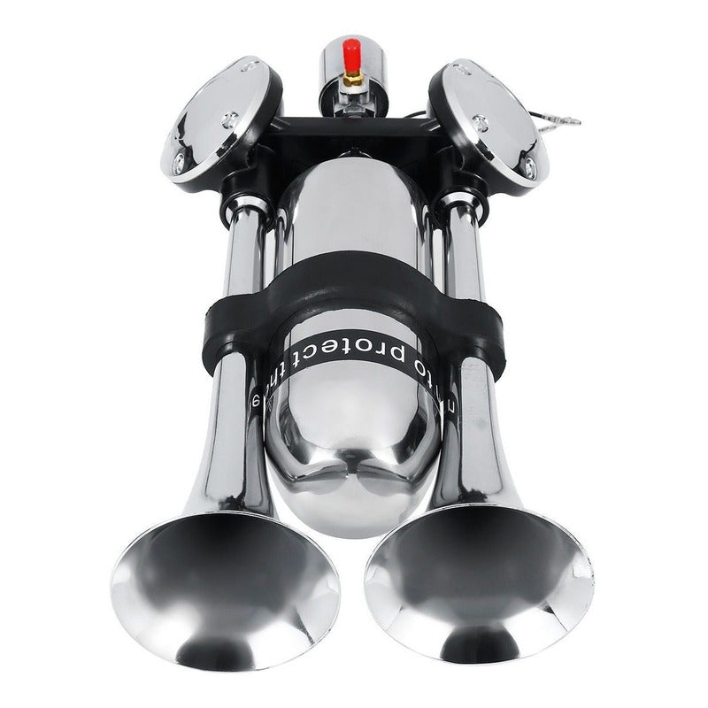 _____________________SOMOS R&C CHILE____________________ Somos la tienda Online más completa del mercado, donde puedes encontrar todo aquello que estás buscando y una gran variedad de productos novedosos, con una ubicación privilegiada en Santiago Centro. Aprovecha un solo envió e incluye más productos en tu CARRITO DE COMPRAS. Todos nuestros productos son probados antes de ser enviados, para brindarte la mejor experiencia de compra. Si tienes un problema no dudes en escribirnos estaremos atentos para ayudarte y brindarte asesoría. Haz tu compra segura con nosotros, realizamos envíos por mercado envíos (y Transportes a convenir), además si te encuentras en Santiago contamos con envío rápido flex. Te brindamos la MEJOR ATENCIÓN Pre y Post Compra, para solucionar todas tus dudas. _____________________________________________ ** NOTA: NO INCLUYE COMPRESOR ** ** NOTA: NO INCLUYE COMPRESOR ** Las especificaciones Color: plata Bobina de voz: cobre, aleación de zinc Material de acero inoxidable: acero inoxidable -Buena calidad de sonido: no se ve afectada, baja temperatura, alta -Fácil de instalar, acabado cromado brillante y sonido de bocina de tren -El enchufe tiene buen contacto Voltaje: 12V/24V Decibel de salida: 500DB Características -Este producto es adecuado para todos los modelos con dispositivo de fuente de aire. -Duradero: material de alta calidad, no es fácil de dañar. -Alta resistencia a la abrasión: Resistencia a la abrasión, prometiendo una larga vida útil. -Tiene las características de alta sensibilidad y larga vida útil. NOTA: NO INCLUYE COMPRESOR