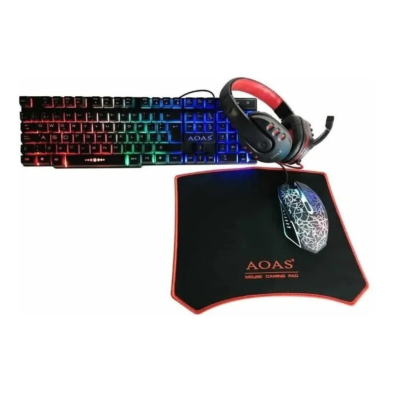 Kit Gamer 4en1 Teclado + Mouse + Mouse-pad + Audifnos Aoas / Teclado Negro