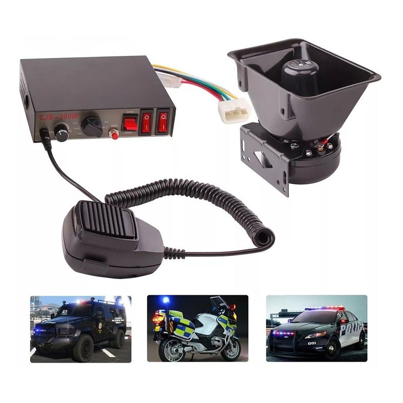 Bocina Policial 200wt Sirena Carabinero 9 Tono Megáfono Mod2