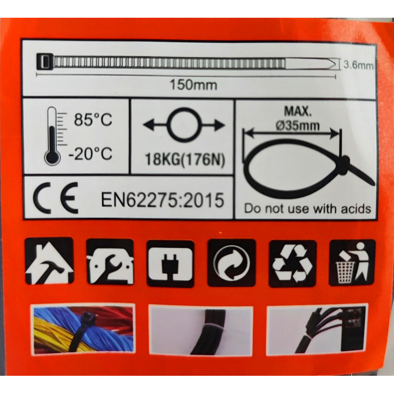 Set 40pcs Amarras Plásticas 3.6x150mm Multiuso Bridas Nylon
