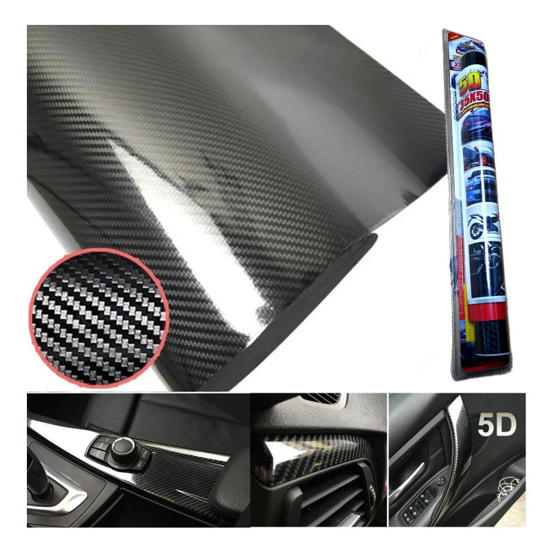 Papel Vinilo Fibra Carbono 5d Brillante Autoadhesivo 35x50cm