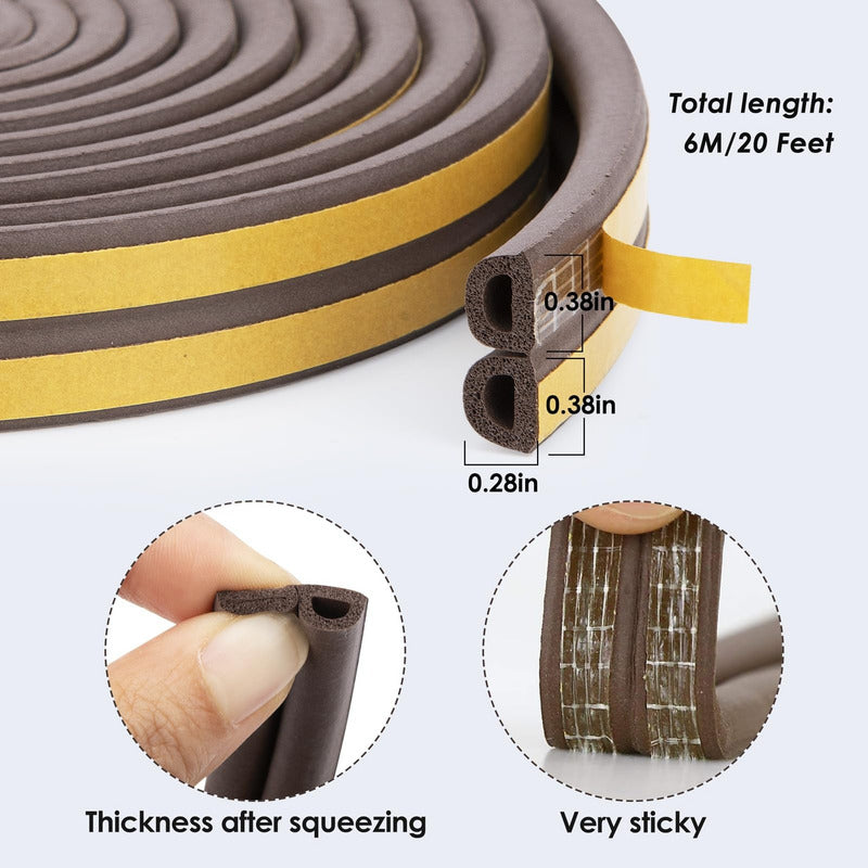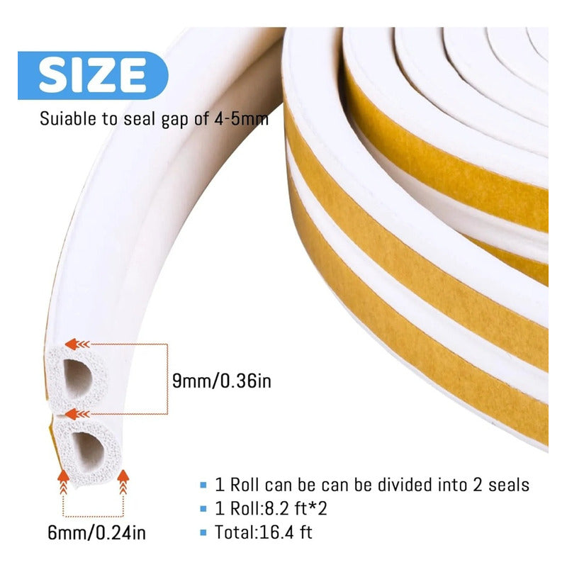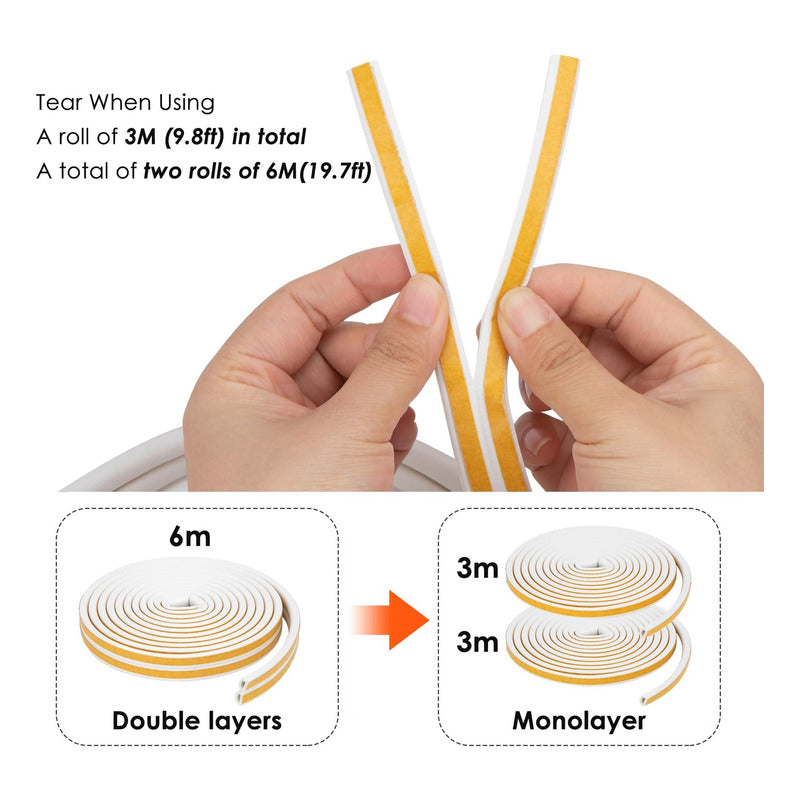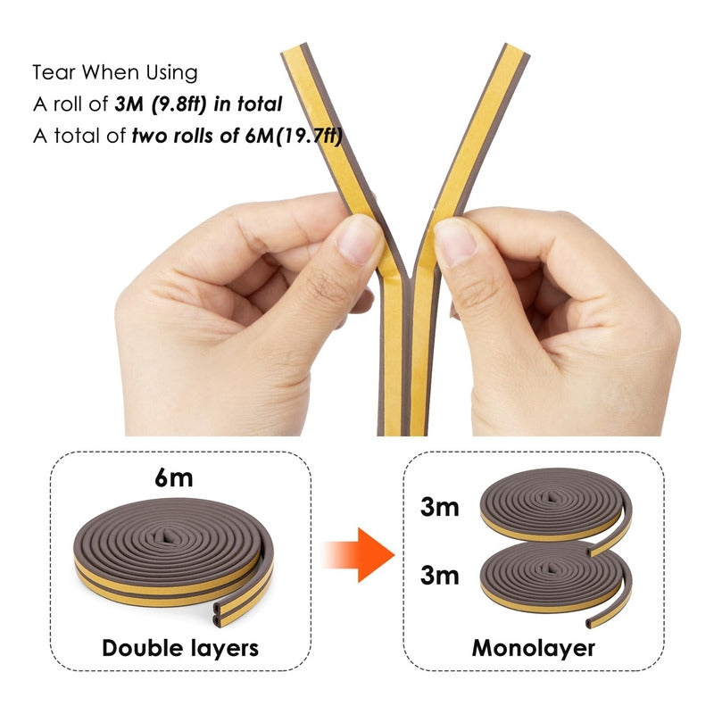 Materiales finos: burlete para puerta hecho de espuma de EPDM. Parte trasera adhesiva de rejilla única, se adhiere firmemente a tus puertas y ventanas protección durante mucho tiempo. Amplia aplicación: detiene inmediatamente el tiro que entraba alrededor de la puerta y la ventana. Burlete de puerta con fuerte resistencia después de la extrusión, bueno para anticolisión, ampliamente utilizado en todo tipo de ventanas correderas, puertas correderas, puertas de seguridad, puerta de armario. Extrema flexibilidad: el mismo interior y exterior lisos, excelente flexibilidad, alta resistencia, súper duradero y no daña tu suelo. Fácil de usar: la cinta de sellado de puerta es fácil y rápida de instalar. Simplemente despega y pega. Viene en dos tiras adjuntas con respaldo adhesivo. Las tiras se pueden separar según sea necesario. Fue fácil despegar la parte trasera e instalar las tiras. Aplicaciones Aislar el frío en invierno y el calor en verano, creando un confortable clima y ambiente en el hogar. Ahorro energético en calefacciones y aires acondicionados. Anticolisión, evita el golpe de puertas y ventanas.