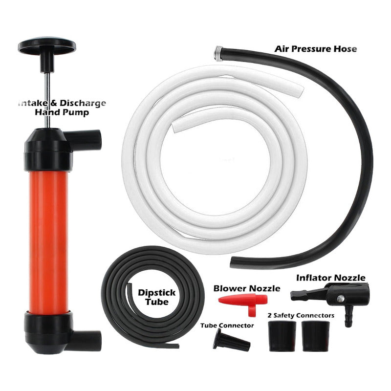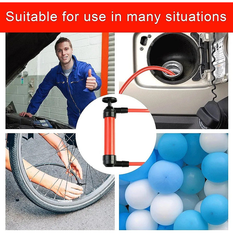 _____________________SOMOS R&C CHILE____________________ Somos la tienda Online más completa del mercado, donde puedes encontrar todo aquello que estás buscando y una gran variedad de productos novedosos, con una ubicación privilegiada en Santiago Centro. Aprovecha un solo envió e incluye más productos en tu CARRITO DE COMPRAS. Todos nuestros productos son probados antes de ser enviados, para brindarte la mejor experiencia de compra. Si tienes un problema no dudes en escribirnos estaremos atentos para ayudarte y brindarte asesoría. Haz tu compra segura con nosotros, realizamos envíos por mercado envíos (y Transportes a convenir), además si te encuentras en Santiago contamos con envío rápido flex. Te brindamos la MEJOR ATENCIÓN Pre y Post Compra, para solucionar todas tus dudas. _____________________________________________ Bomba de transferencia de sifón manual hecha de plástico y manual, y multiuso 3 en 1. Esta bomba de sifón transfiere fácilmente líquidos y aire con un mínimo esfuerzo. Ideal para tractores de césped, barcos, motos acuáticas, PWC, cuatrimotos, motos de nieve, recortadoras, motosierras, generadores, sopladores de hojas, etc. Los usos comunes incluyen cambios de aceite, transferencias de gasolina, inflado de neumáticos planos (bicicleta), globos y mucho más El kit de adaptador de aire incluido te permite bombear neumáticos de automóvil, neumáticos de bicicleta, colchones de aire inflables, juguetes de agua inflables y mucho más. Característica: * úselo para transferir líquidos, eliminar agua, Cambiar aceite y gas de sifón. * Diseño preciso: transfiere rápida y fácilmente cualquier fluido Bomba de sifón de uso múltiple: transfiere la mayoría de los líquidos y bombea aire para hinchables (pelotas deportivas, juguetes de playa) sifón de gas, aceite, etc. * Peso ligero: portátil para un uso conveniente en viajes. Especificación: Tipo de artículo: Bomba inflable Material: plástico Color: rojo Capacidad del cilindro de bombeo: 200cc