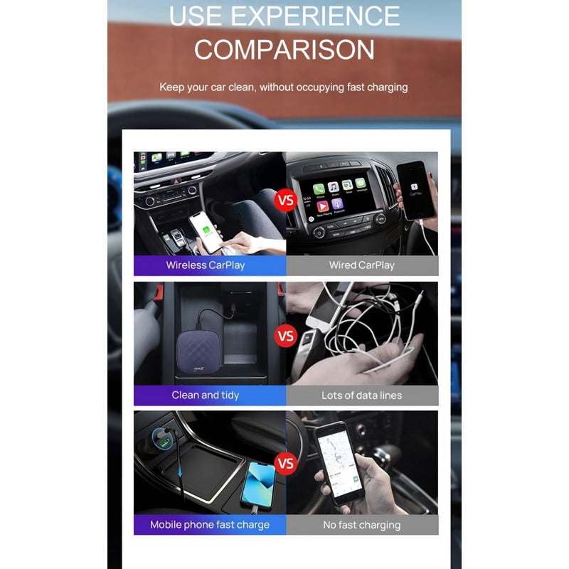 _____________________SOMOS R&C CHILE____________________ Somos la tienda Online más completa del mercado, donde puedes encontrar todo aquello que estás buscando y una gran variedad de productos novedosos, con una ubicación privilegiada en Santiago Centro. Aprovecha un solo envió e incluye más productos en tu CARRITO DE COMPRAS. Todos nuestros productos son probados antes de ser enviados, para brindarte la mejor experiencia de compra. Si tienes un problema no dudes en escribirnos estaremos atentos para ayudarte y brindarte asesoría. Haz tu compra segura con nosotros, realizamos envíos por mercado envíos (y Transportes a convenir), además si te encuentras en Santiago contamos con envío rápido flex. Te brindamos la MEJOR ATENCIÓN Pre y Post Compra, para solucionar todas tus dudas. _____________________________________________ SOLO FUNCIONA CON RADIOS ORIGINALES DEL AUTO QUE TENGA SISTEMA CARPLAY O ANDROIDAUTO REVISAR LOS MODELOS CON LOS QUE NO ES Compatible CARLINKIT CARPLAY ANDROID AI BOX ¿Qué puedes explorar y ganar? 1. Adaptador inalámbrico CarPlay para coches Apple CarPlay de fábrica. 2. Android automático inalámbrico; 3. Carga el sistema Android 12 4. Youtube y Netflix integrados; 5. Google Play Store integrado; 6. Navegación y visualización dividida; 7. Teléfono Bluetooth dual y música; 8. Compatible con tarjeta TF de 128 G. 9. Antena GPS y WIFI integrada. La diferencia entre nuestra caja multimedia y nuestros amigos: 1. Compatible con tarjeta SIM 4G LTE. 2. Perfectamente compatible con iOS 15. 3. Qualcomm Snapdragon 8x ARM Cortex A53, utiliza tecnología de vanguardia de 14 nm para potenciar experiencias premium en "teléfonos inteligentes" de alto nivel. 4. Sistema de refrigeración múltiple fuerte para no bloquearse. Especificaciones del producto: Tamaño: 79,8 x 79,8 x 14,7 mm. Solución: Qualcomm Snapdragon SDM450 CPU: 8 núcleos. RAM+ROM: 8 GB (RAM) + 128 GB(ROM). Sistema operativo: Android 12 Carplay inalámbrico: construye Carplay inalámbrico. Android con cable: construye Android automático inalámbrico WIFI: 2.4G/5G Bluetooth: Bluetooth 5.0 Tarjeta SIM: 4G / 3G / 2G Nano SIM Enchufes: tipo C hembra, ranura para tarjeta TF (máximo 128 G) GPS: antena GPS integrada y antena wifi, completamente oculta. Requisitos previos compatibles: El adaptador Carlinkit Ai Box Plus solo funciona con autos con carplay con cable OEM. Verifique que la radio de su automóvil tenga una pantalla táctil. Si no estás seguro de si la caja se ajusta a tu automóvil, ponte en contacto con nosotros antes de comprar. Sistema Android 12 hasta el minuto: Este adaptador puede ayudar a los automóviles con carplay de fábrica a añadir un sistema Android + Android Auto+CarPlay inalámbrico. Chip procesador Qualcomm de 8 núcleos (QCM6125), Android 12, RAM+ROM es 4+64GB, tarjeta GPS/TF incorporada/Android Auto inalámbrico, el sistema también viene con su propia tienda de aplicaciones para descargar aplicaciones masivas a voluntad. Dispositivos móviles compatible: iPhone iOS, teléfonos Android Aplicaciones masivas: Google Play, Spotify, Netflix YouTube, música, espera IPTV Carplay inalámbrico: Adaptador Carlinkit Ai Box Plus. Con un módulo WiFi y Bluetooth dual, le proporciona una transmisión inalámbrica más rápida. No es compatible con Ford F150 2022. Ten en cuenta que tu automóvil debe tener CarPlay con cable y pantalla táctil