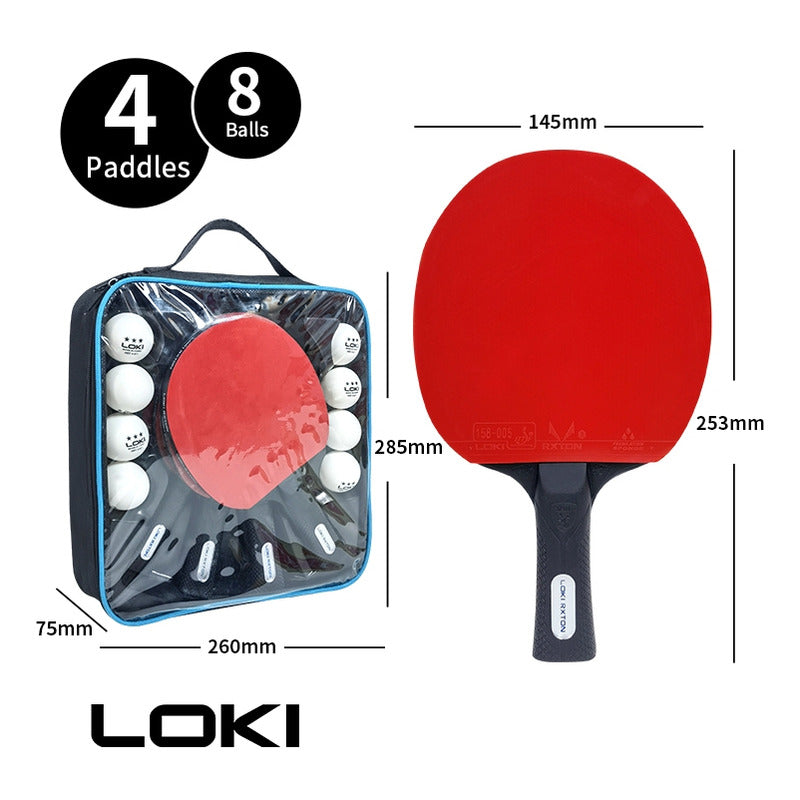 Set Ping Pong 4 Paletas + 8pelotas +estuche Kit Tenis Mesa Rojo/negro Fl (cóncavo)