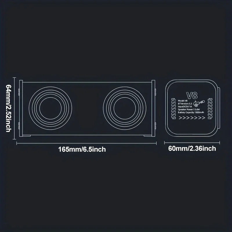 ________SOMOS R&C CHILE_______ Somos la tienda Online más completa del mercado, donde puedes encontrar todo aquello que estás buscando y una gran variedad de productos novedosos, con una ubicación privilegiada en Santiago Centro. Aprovecha un solo envió e incluye más productos en tu CARRITO DE COMPRAS. Todos nuestros productos son probados antes de ser enviados, para brindarte la mejor experiencia de compra. Si tienes un problema no dudes en escribirnos estaremos atentos para ayudarte y brindarte asesoría. Haz tu compra segura con nosotros, realizamos envíos por mercado envíos (y Transportes a convenir), además si te encuentras en Santiago contamos con envío rápido flex. Te brindamos la MEJOR ATENCIÓN Pre y Post Compra, para solucionar todas tus dudas. _________________________________________________________________ Hermoso parlante portátil con Bluetooth, diseño transparente con doble bocina y 13.6w de potencia. La conexión Bluetooth 5.3 permite que una buena calidad de audio llegue al oído Al conectar dispositivos a través de Bluetooth, todos los controles están en tus manos. La transmisión de señal es rápida y estable, con un rango de conexión de 8mt Altavoz dual de alta potencia de 13.6W con impresionante efecto de sonido de 360°Bajos visibles Explota la energía de cada nota para restaurar claramente la calidad del sonido de la pista.El futuro ha llegado: los robots transparentes sienten el sonido de la tecnología Integrar las emociones con la ciencia y la tecnología en el diseño para cumplir con los estándares estéticos modernos. Modelo: V8 Capacidad de la bateria: 1800mAh Potencia del parlante: 13.6w Versión de bluetooth: 5.3 Con luz led Doble bocina DC-5v