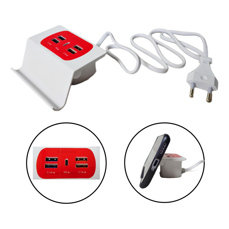 Hub Usb Alargador Enchufe 220v 4 Puertos Usb 1 Tipo C 3.1a