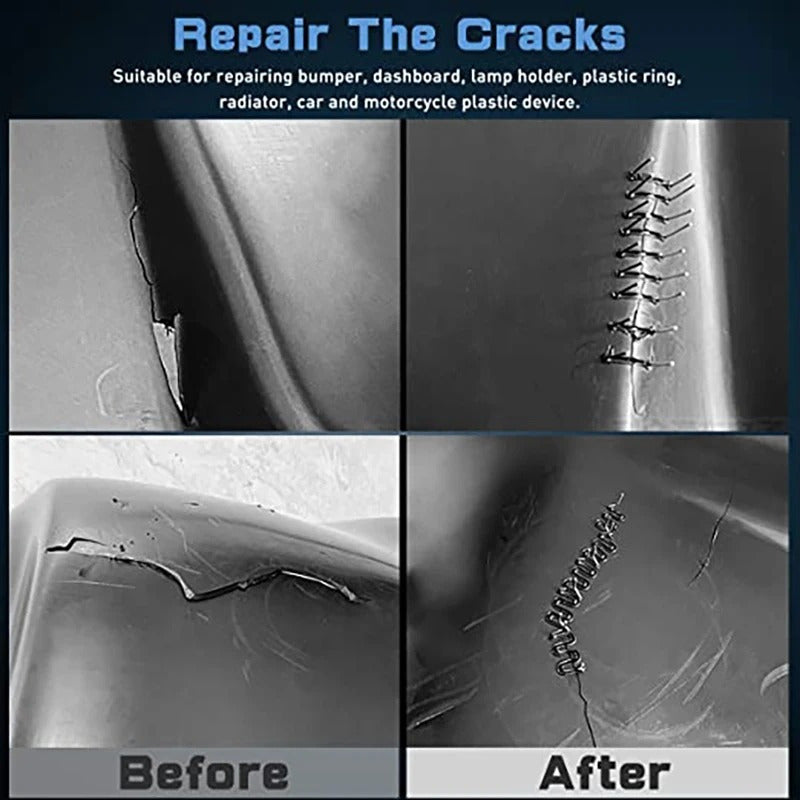 ________SOMOS R&C CHILE_______ Somos la tienda Online más completa del mercado, donde puedes encontrar todo aquello que estás buscando y una gran variedad de productos novedosos, con una ubicación privilegiada en Santiago Centro. Aprovecha un solo envió e incluye más productos en tu CARRITO DE COMPRAS. Todos nuestros productos son probados antes de ser enviados, para brindarte la mejor experiencia de compra. Si tienes un problema no dudes en escribirnos estaremos atentos para ayudarte y brindarte asesoría. Haz tu compra segura con nosotros, realizamos envíos por mercado envíos (y Transportes a convenir), además si te encuentras en Santiago contamos con envío rápido flex. Te brindamos la MEJOR ATENCIÓN Pre y Post Compra, para solucionar todas tus dudas. _________________________________________________________________ La mejor manera de reparar la mayoría de los productos modernos que están hechos de plástico. Adecuado para reparar y reforzar piezas de plástico de todos los automóviles, como parachoques, salpicaderos, portalámparas, anillos de plástico y suministros diarios de plástico. - MULTIFUNCIONAL: Este kit de herramientas de reparación de soldadura está diseñado para reparar piezas de plástico de su vehículo. No dañará la superficie del vehículo. Características: La grapa de acero inoxidable no se oxida. Diseño de grapa ondulada para máxima carga. Operación rápida y fácil. No se requiere formación. Aprenda a usar en segundos. Ergonómico diseñado para encajar en las palmas de su mano. Soldar grapas en los plásticos rápida y fácilmente. La mejor manera de reparar la mayoría de los productos modernos que están hechos de plástico.
