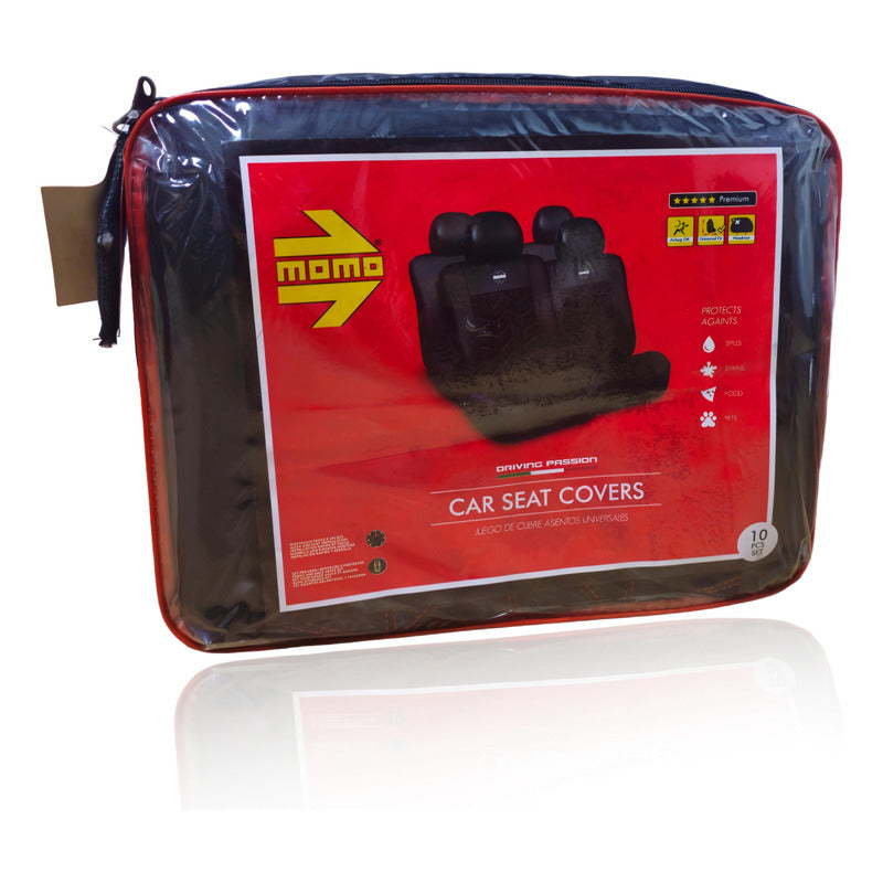 Set Cubre Asiento Momo 10pcs Eco Cuero Y Gamuza Premiun Auto