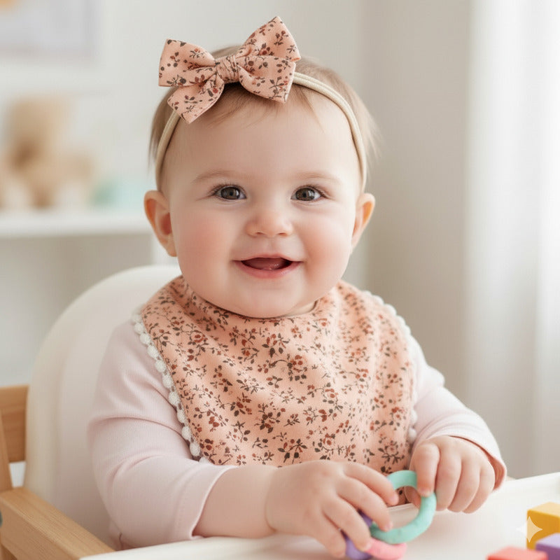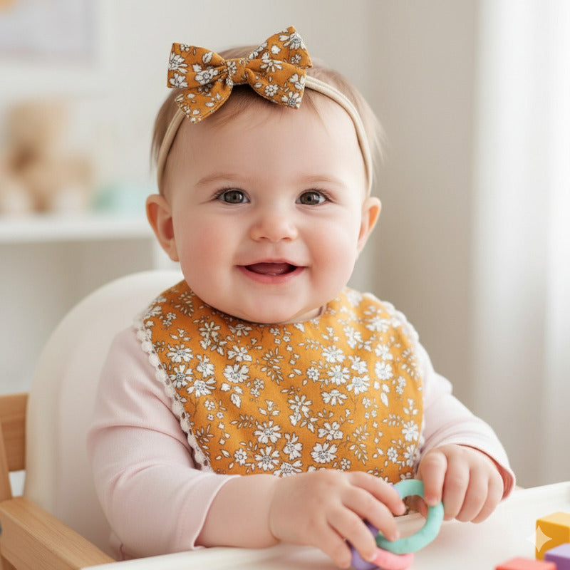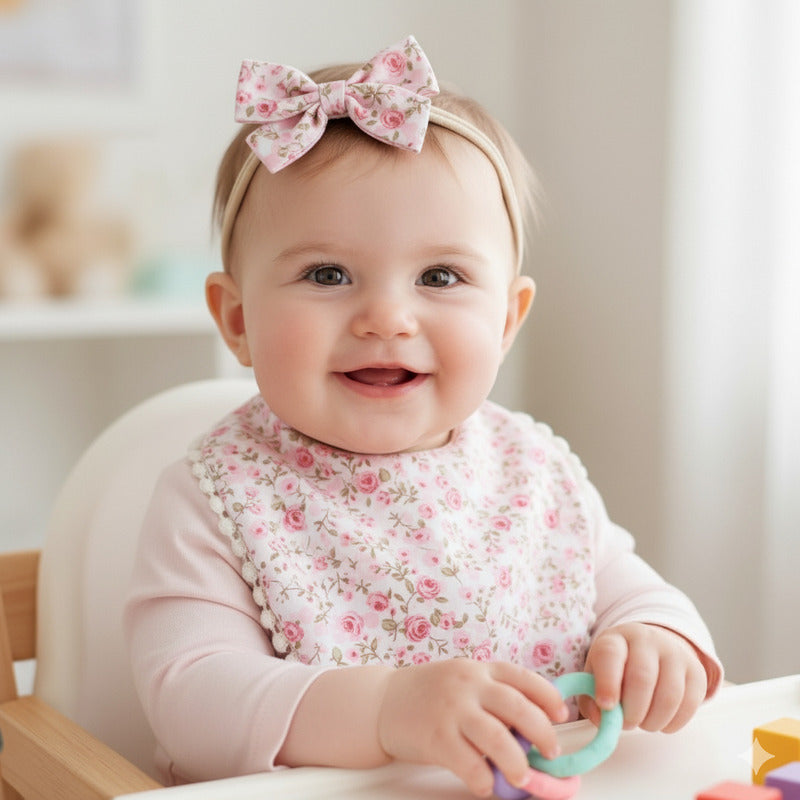 Set Babero + 2 Cintillo Diadema Color Nude Reversible Encaje