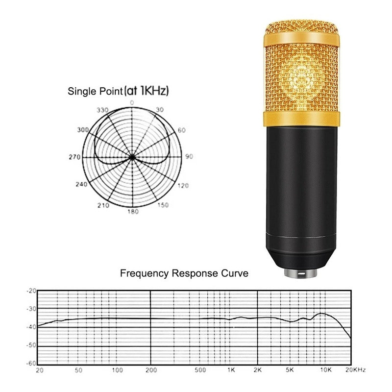 _____________________SOMOS R&C CHILE____________________ Kit Micrófono Condensador Profesional Compra Segura! Somos Tienda Virtual _____________________________________________ El micrófono Condensador BM-800 proporciona la calidad y la salida precisa que se requiere para una buena grabación, ya que produce bajo ruido. Adecuado para estudios de grabación, estaciones de radiodifusión y computadora. Útil para principiantes o profesionales Características 1. Micrófono de grabación profesional BM-800 micrófono condensador de diafragma pequeño. 2. La sensibilidad a la recogida del micrófono es alta y el sonido es claro. 3. Para chat de voz, grabación personal, producción de karaoke por ordenador. 4. Apariencia personalizada, variedad de colores, combinación profesional y de moda. 5. Configure algodón de malla resistente al viento especial para eliminar eficazmente el sonido "POP" durante la grabación. 6. Cabezal de película con un excelente rendimiento de respuesta de frecuencia, especialmente desarrollado para grabación personal. 7. Diseño profesional de circuito de procesamiento de audio con el ordenador, mayor aplicabilidad. Bajo nivel de ruido, alto nivel de presión de sonido y gran rango dinámico. Tipo: micrófono de condensador Respuesta de frecuencia: 30HZ-20kHz Sensibilidad: -34DdB + 2dB(0dB-1V/Pa a 1kHz) Impedancia de salida: 1500 ± 30% (a 1kHz) Resistencia de carga: 2 10000 Nivel de ruido: 16dBA Nivel máximo de presión acústica: 130dB (a 1kHz s 1% T.H.D) Relación señal-ruido: 60dB - MICROFONO CONDENSADOR -ATRIL BRAZO AJUSTABLE -CABLE MICROFONO -ANTIPOP MALLA -ANTIPOP ESPONJA -ARAÑA (SHOCK MOUNT) -PINZA -SPLITTER Consumo de corriente: 3mA