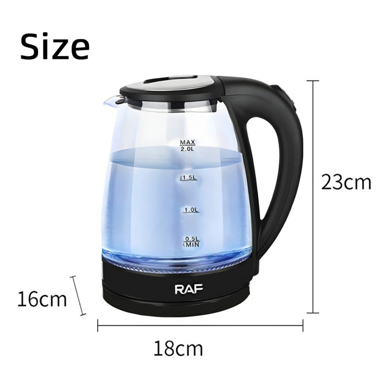 _____________________SOMOS R&C CHILE____________________ Somos la tienda Online más completa del mercado, donde puedes encontrar todo aquello que estás buscando y una gran variedad de productos novedosos, con una ubicación privilegiada en Santiago Centro. Aprovecha un solo envió e incluye más productos en tu CARRITO DE COMPRAS. Todos nuestros productos son probados antes de ser enviados, para brindarte la mejor experiencia de compra. Si tienes un problema no dudes en escribirnos estaremos atentos para ayudarte y brindarte asesoría. Haz tu compra segura con nosotros, realizamos envíos por mercado envíos (y Transportes a convenir), además si te encuentras en Santiago contamos con envío rápido flex. Te brindamos la MEJOR ATENCIÓN Pre y Post Compra, para solucionar todas tus dudas. _____________________________________________ Hervidor eléctrico transparante con Luz azul, con capacidad de 2Litros y potenvia 1500w. Durabilidad y funcionalidad. Tiene luces LED azules de apertura que iluminan el hervidor cuando está en uso, y está hecha con vidrio resistente a las manchas y acero para durar mucho tiempo Seguro contra incendios: está equipado con función de apagado automático y tecnología de protección contra hervidos en seco: se apaga solo cuando la olla ha alcanzado su temperatura de ebullición. Gran incorporación a su cocina: sabe que su hervidor está en proceso de ebullición cuando el indicador LED azul está encendido, el diseño simple se ve encantador en su mostrador, El anillo de luz oculto dentro del vidrio es seguro y duradero. Luz indicadora de LED iluminada: La tetera se iluminará cuando comience a hervir el agua, la luz se apagará automáticamente después de hervir. - Potencia 1500w - Capacidad 2.0 Litros - Luz indicadora - Apagado automático - Indicador de nivel de agua - Protección contra cocción en seco - Base alimentadora 360 - 220-240v 50/60Hz